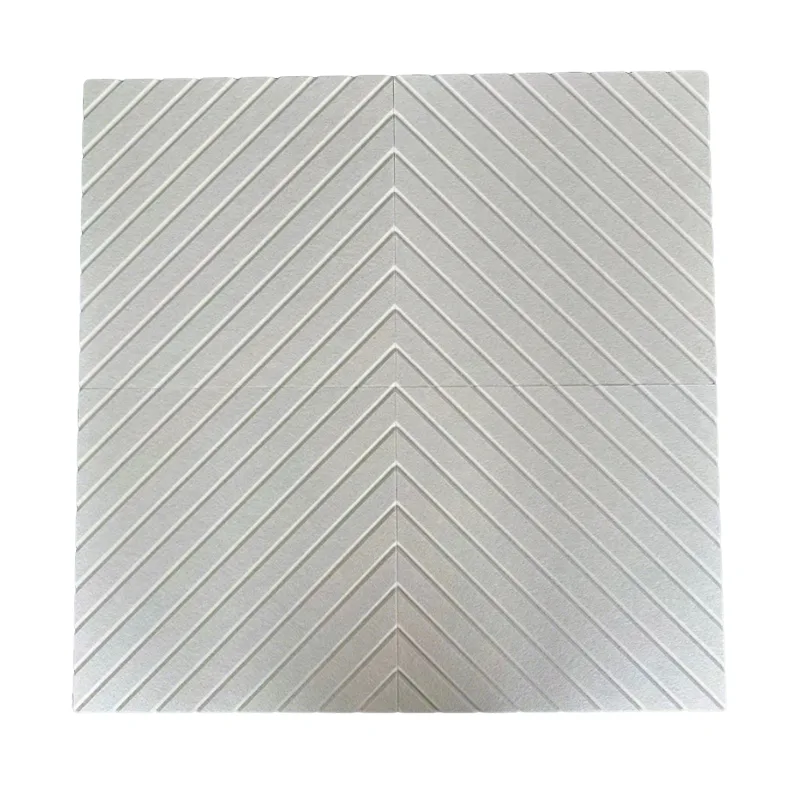 1. Güvenli ve risksiz: Fiberglasla ilişkili potansiyel tahriş risklerinin aksine Bej V-kanallı PET Keçe Akustik Panelimiz, kimyasal yapıştırıcılara olan ihtiyacı ortadan kaldıran termal yapıştırma teknolojisini kullanır. Formaldehit içermemesi, kokusuz olması ve küf ile bakterilere karşı dayanıklı olması, onu yüksek güvenlik gereksinimleri olan evler, okullar ve hastaneler için ideal kılar.