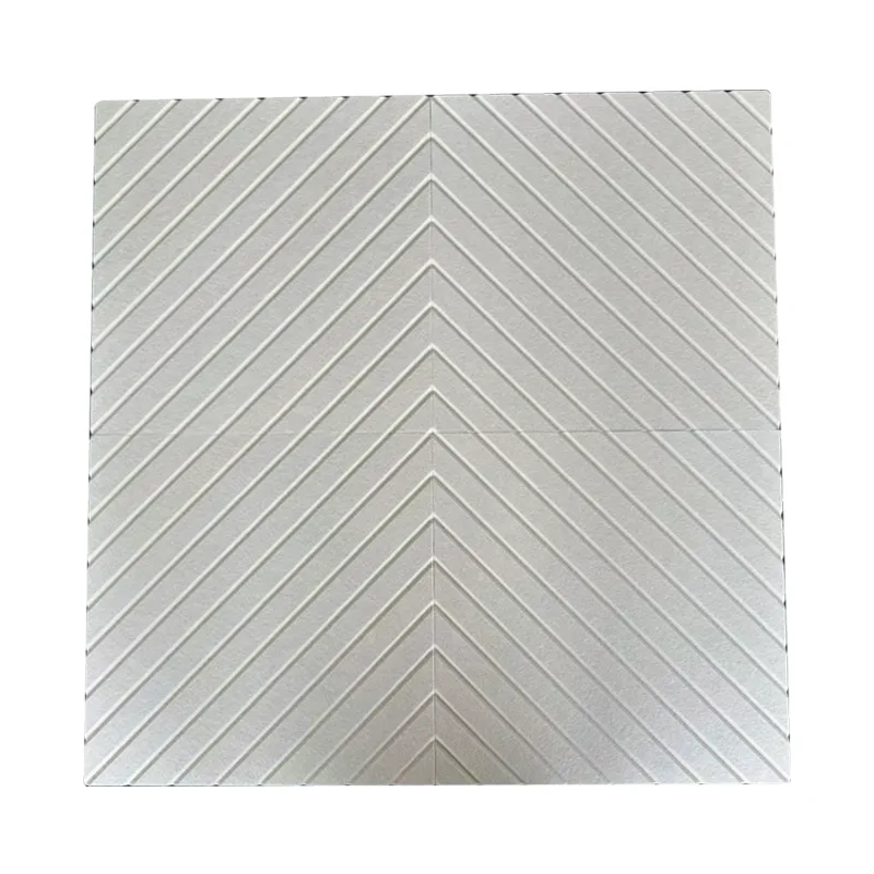 2. Ses Emme + Estetik: ISO354 sertifikalı ses emme performansı, ofis gürültüsü, sinema yankıları ve sınıf gürültüsü gibi sorunları kolayca çözer. Ok şeklindeki V-oluk dokusu monotonluğu ortadan kaldırarak duvarları/tavanları mekanın öne çıkan bir parçası haline getirir;